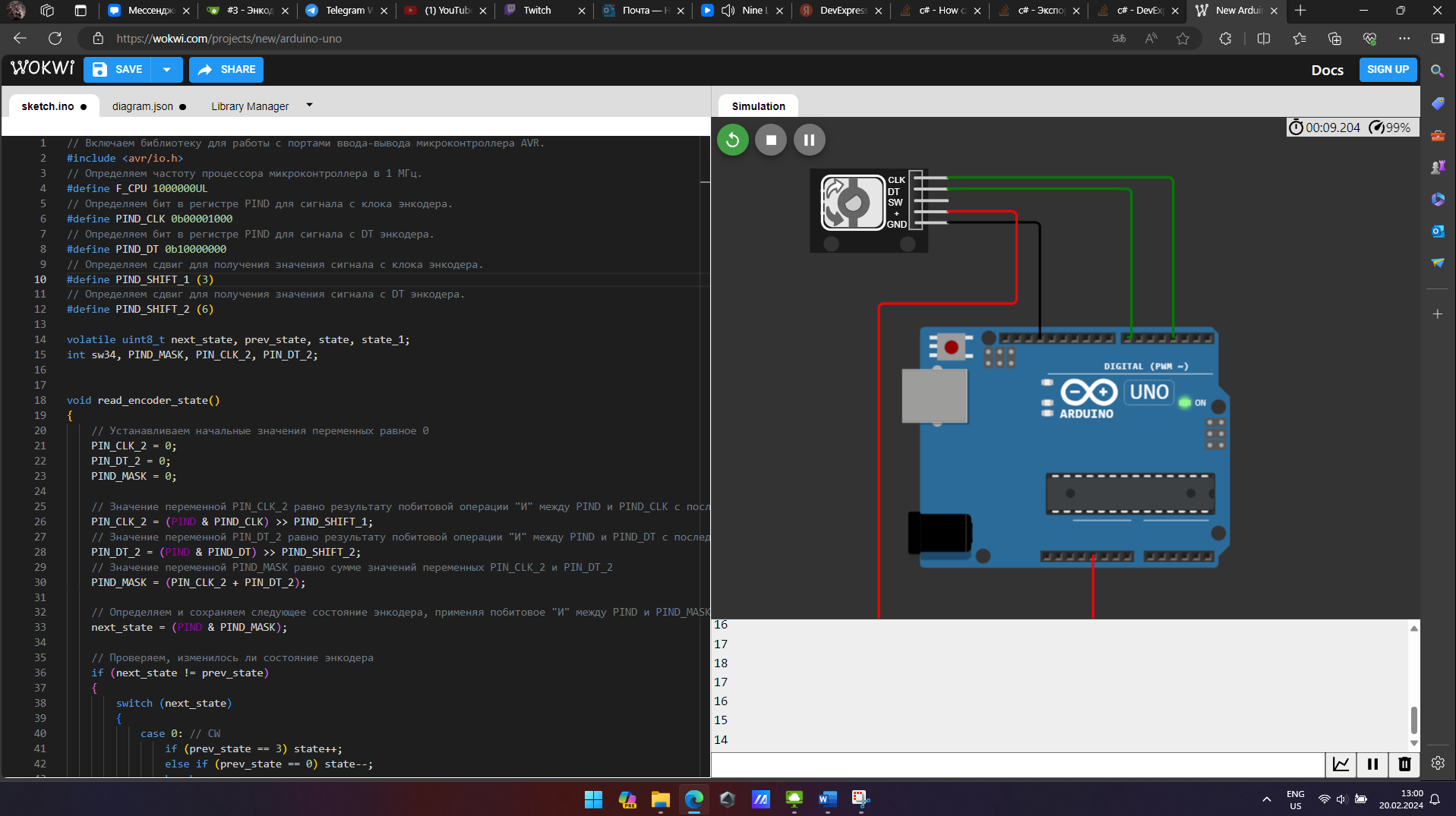 Прошу подумать хорошо над строкой кода. Опишите в комментариях каждую строчку кода так, чтобы понял человек, который не работал с энкодерами. Читаем состояние энкодера не является хорошим комментарием.