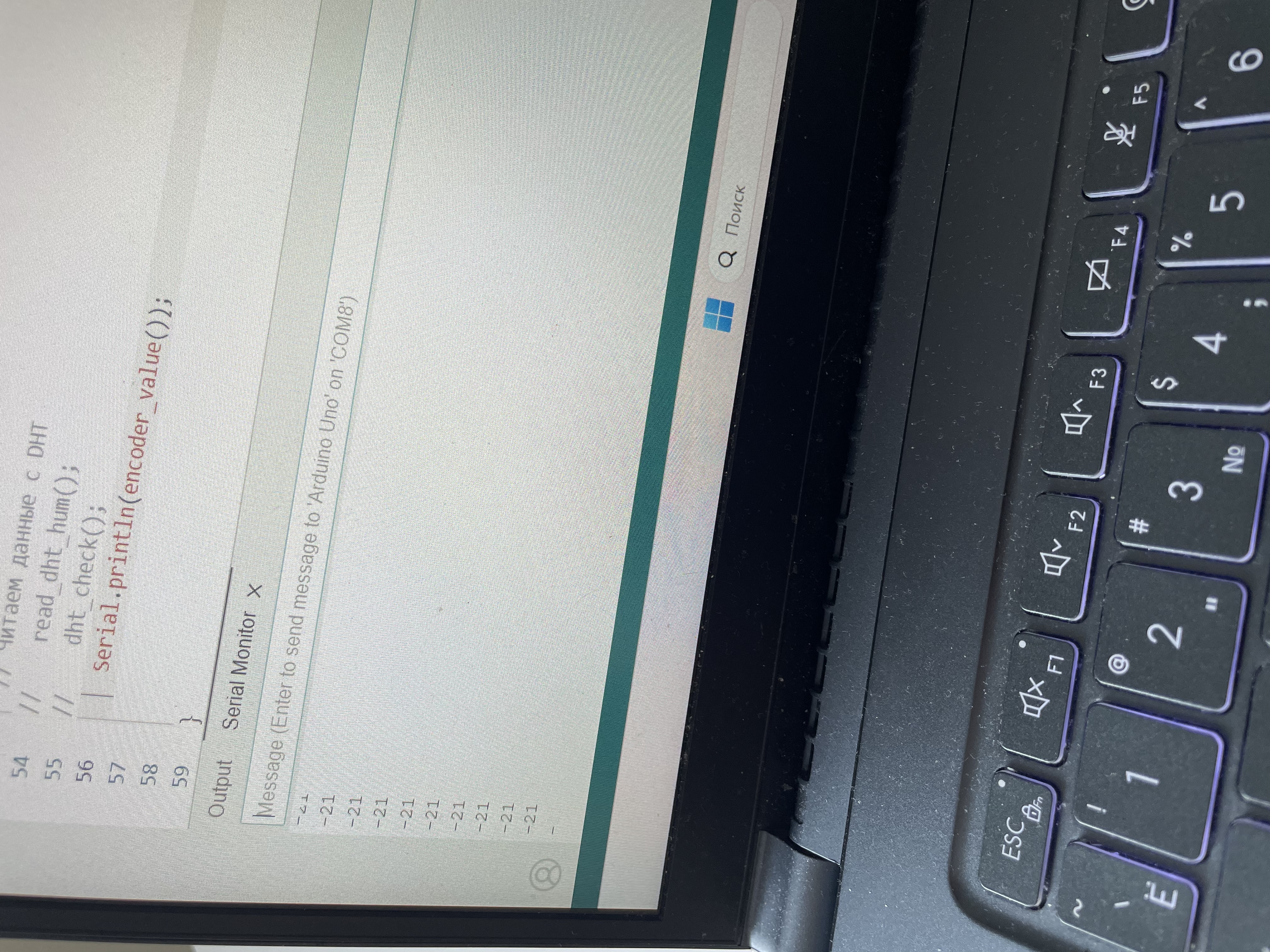 int encoder()изENC_CLKбудет притянут к земле всё время?Мы в Мэйне вызываем функцию энкодера в loop, то есть постоянно, если значение энкодера не менялось то он просто будет выводить старое значение бесконечно пока мы не завершим работу программы, был вариант реализации через считывание старого значения и его сравнения с новым поступившим и если они не одинаковые то выводить новое значения, но данный вариант при работе общей программы к сожалению почему-то не работает, но если вместо возвращаемого значения выводить через Serial.println, то работает как нужно и выводит только новые значения