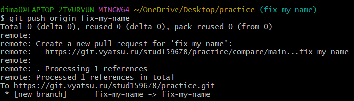 Коммит и пуш ветки fix-my-name #3