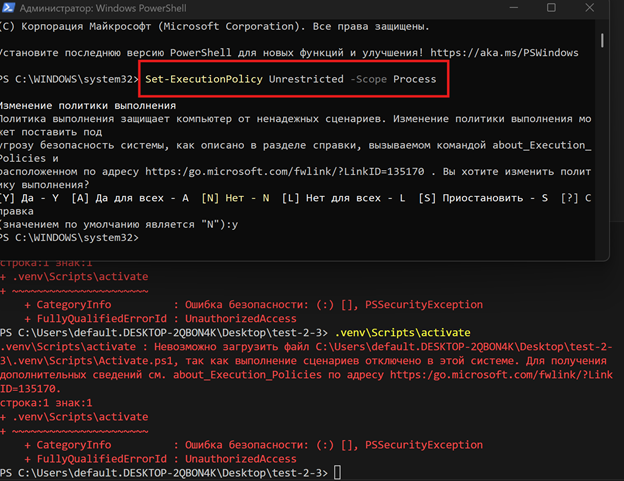 Проблема политики безопасности Windows при активации виртуального окружения и ее решение