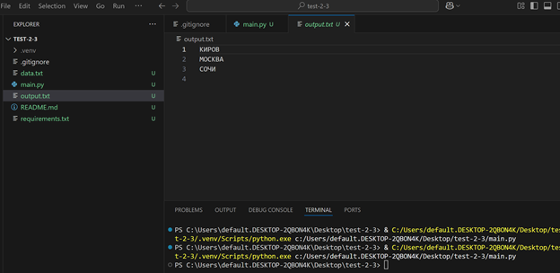 Выходные данные скрипта