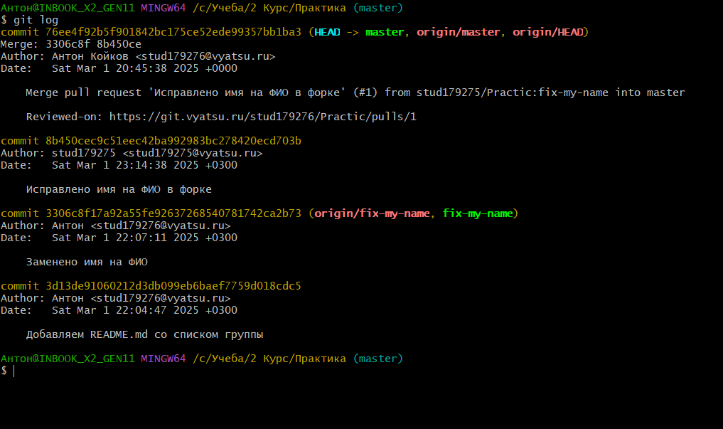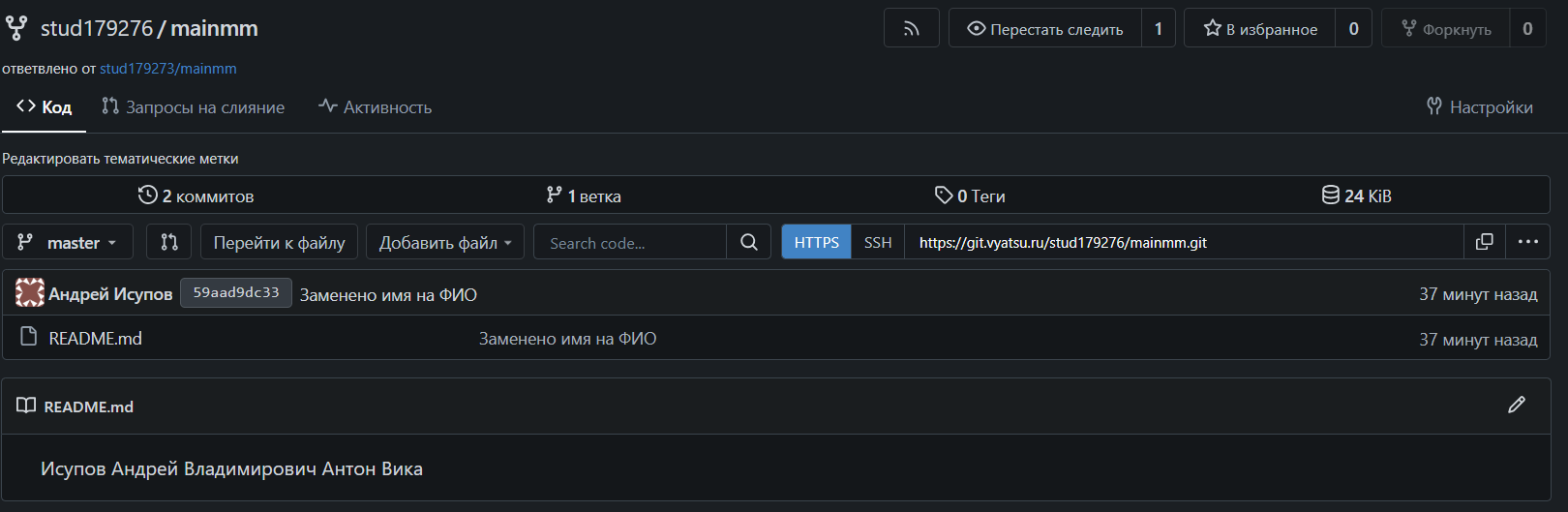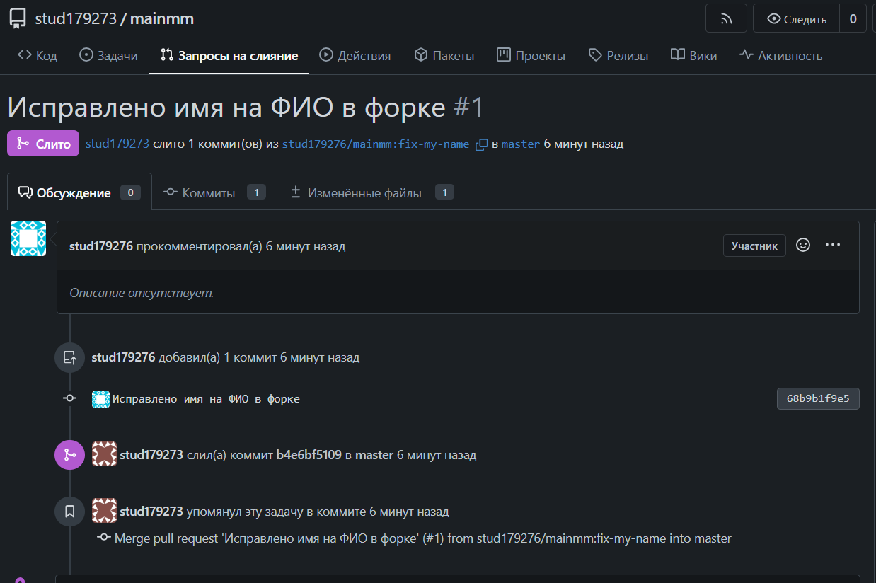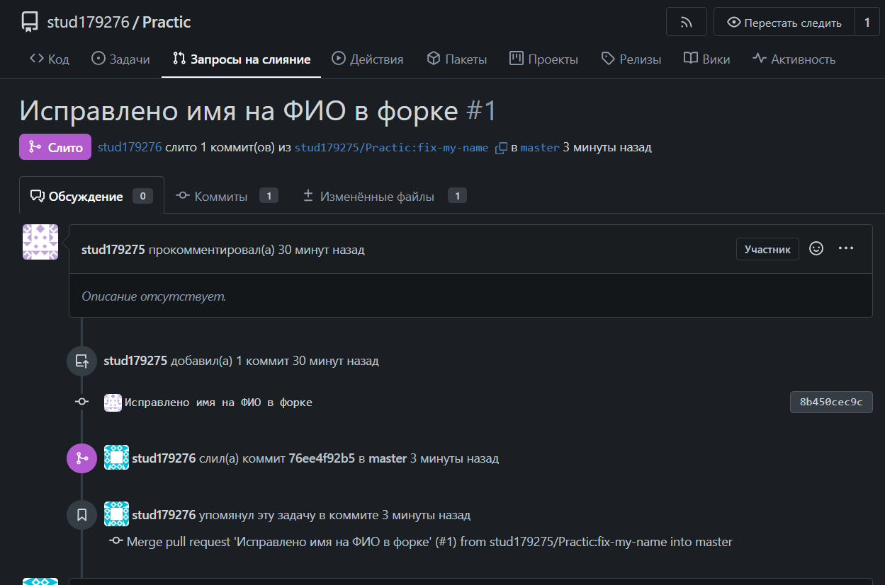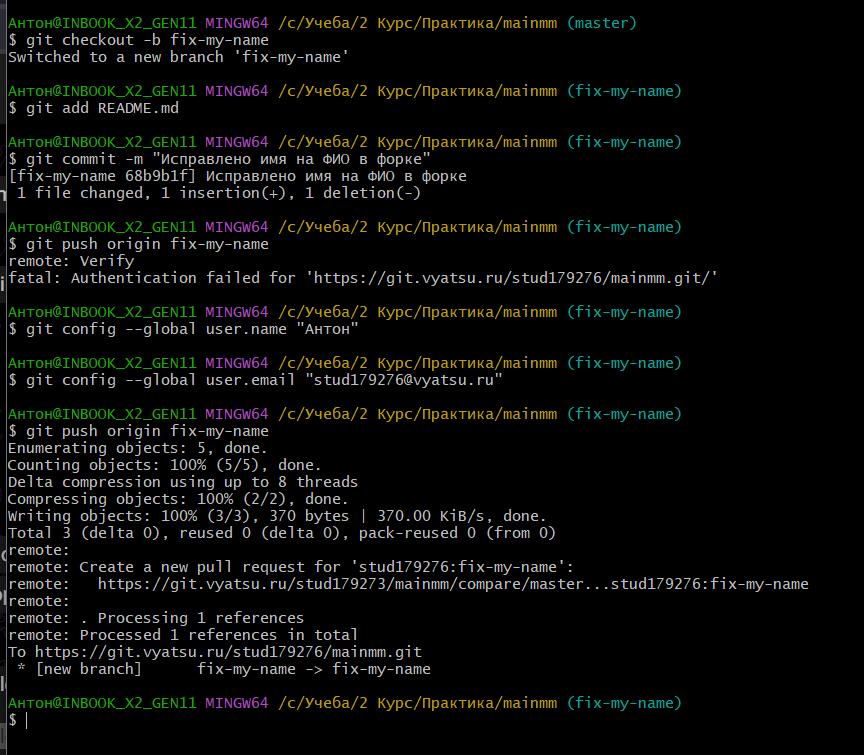Изменил свое имя на ФИО в файле, создал новую ветку, создал коммит и запушил ветку